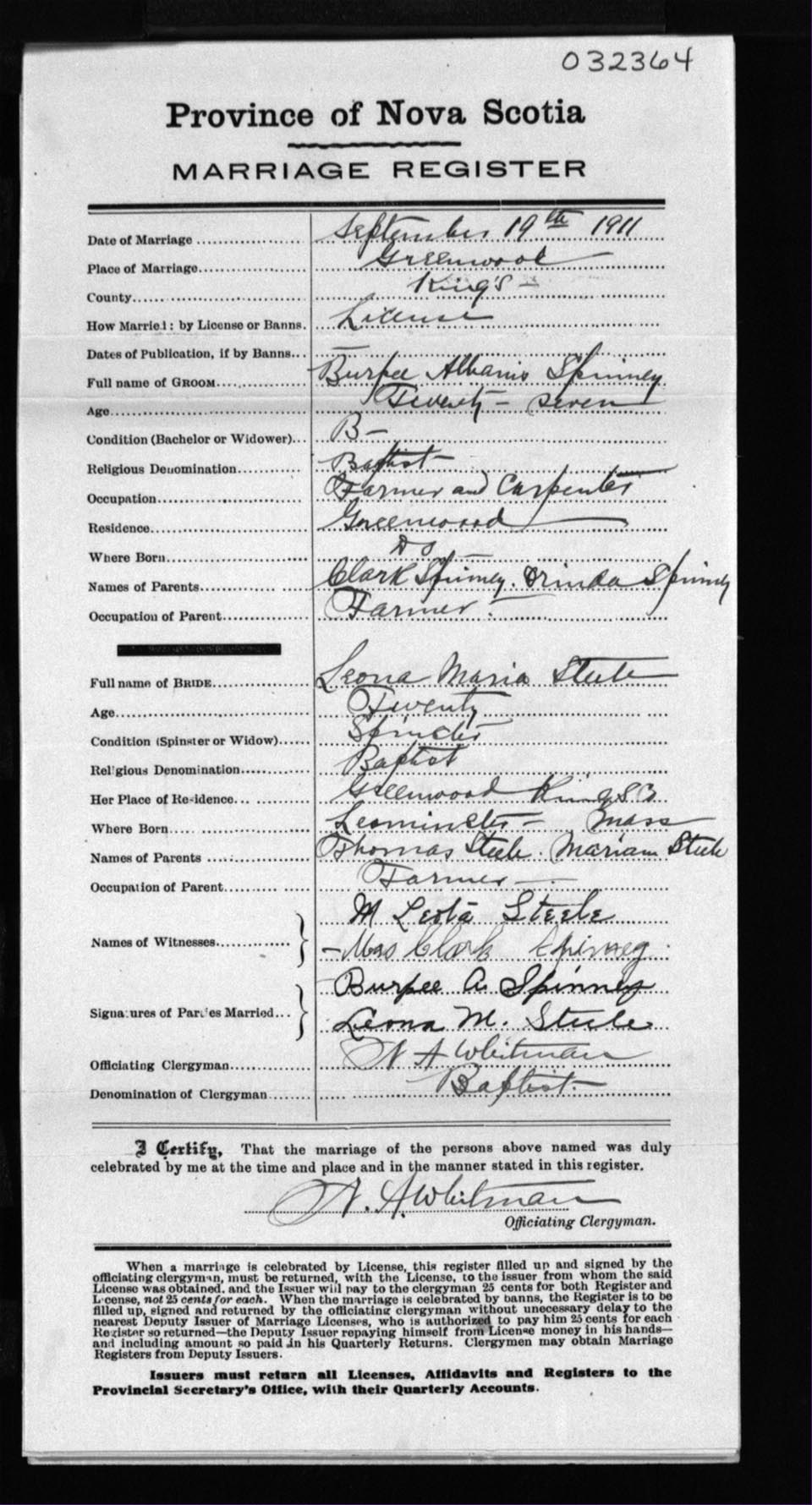 Registration: Year: 1911 number: 32364