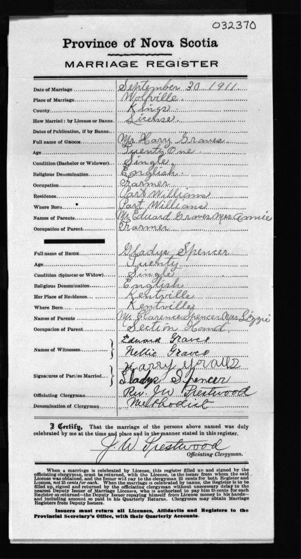 Registration: Year: 1911 number: 32370