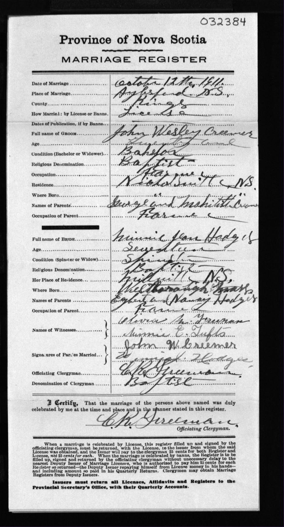 Registration: Year: 1911 number: 32384
