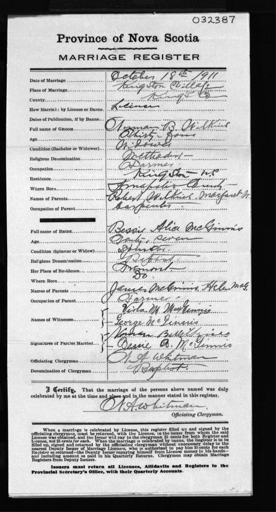 Registration: Year: 1911 number: 32387