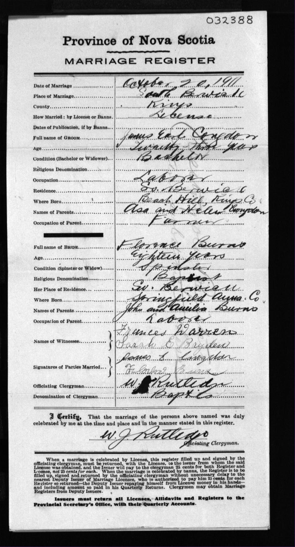 Registration: Year: 1911 number: 32388