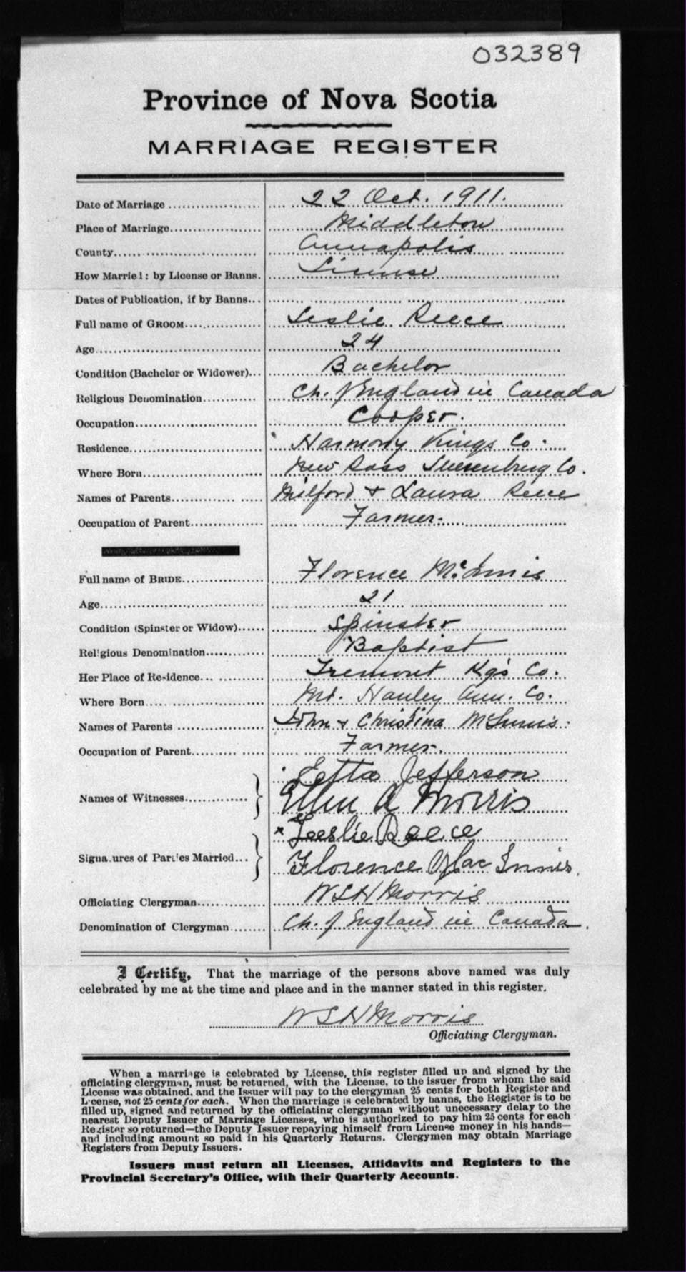Registration: Year: 1911 number: 32389