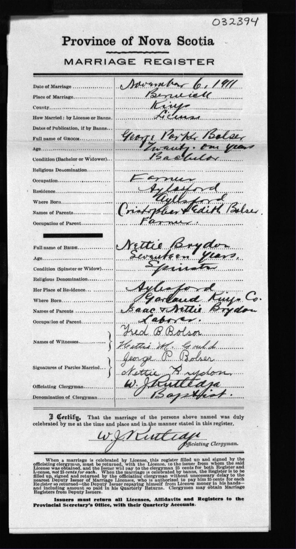 Registration: Year: 1911 number: 32394