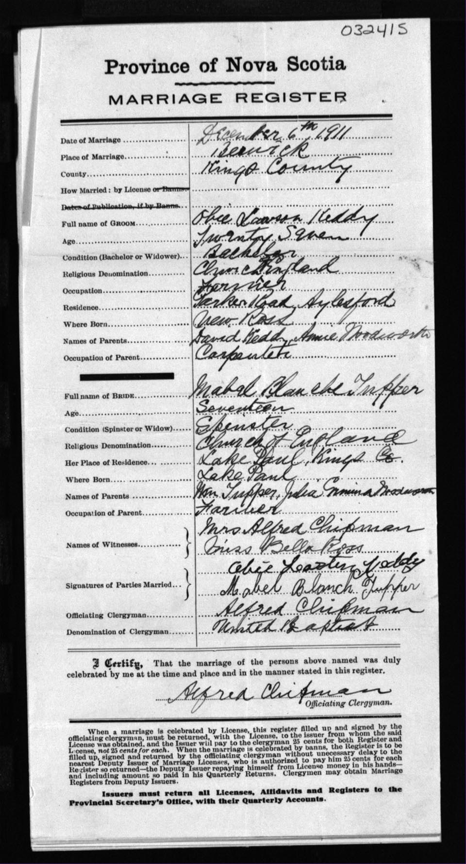 Registration: Year: 1911 number: 32415