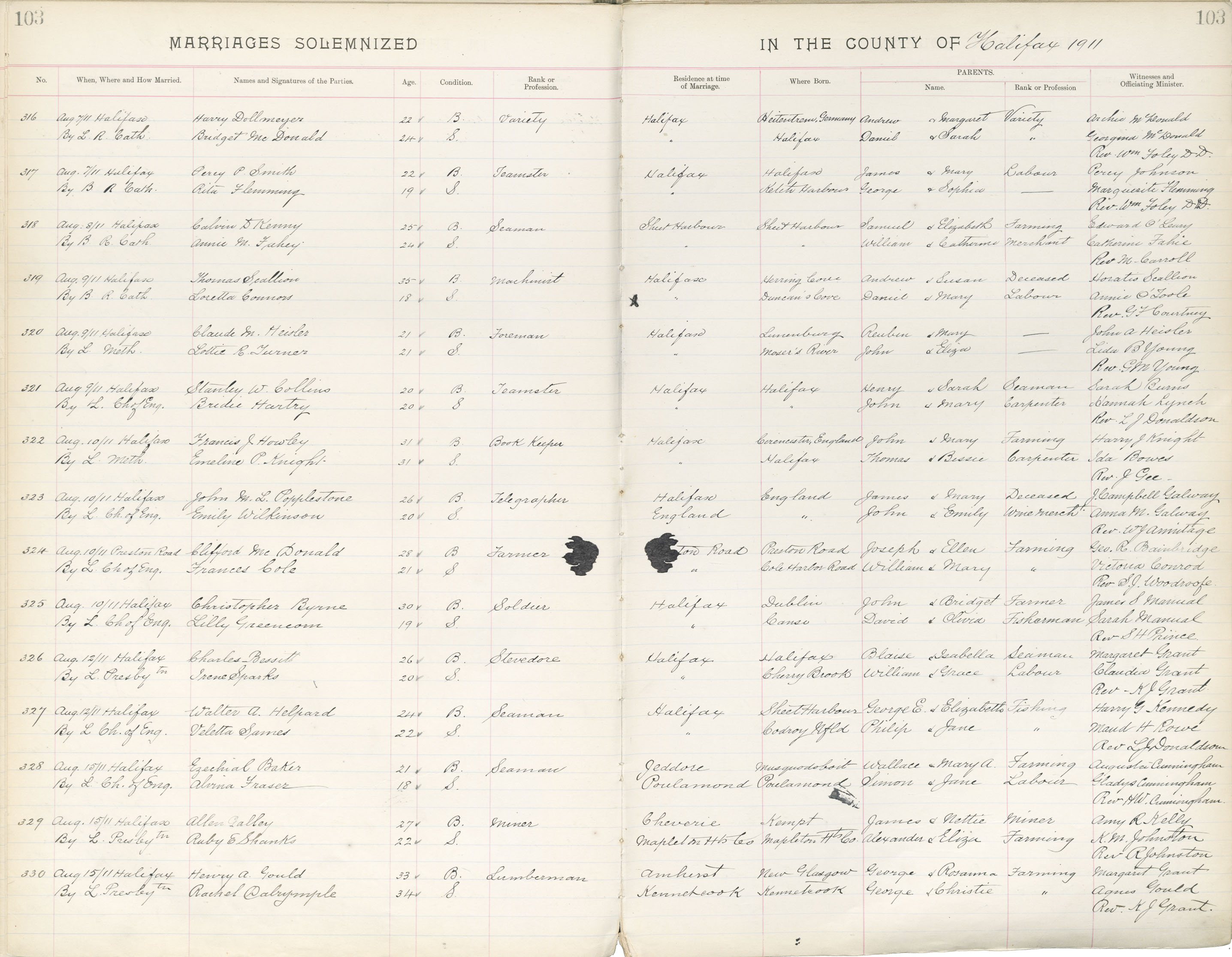 Registration: Year: 1911 book: 1821 page: 103 number: 316
