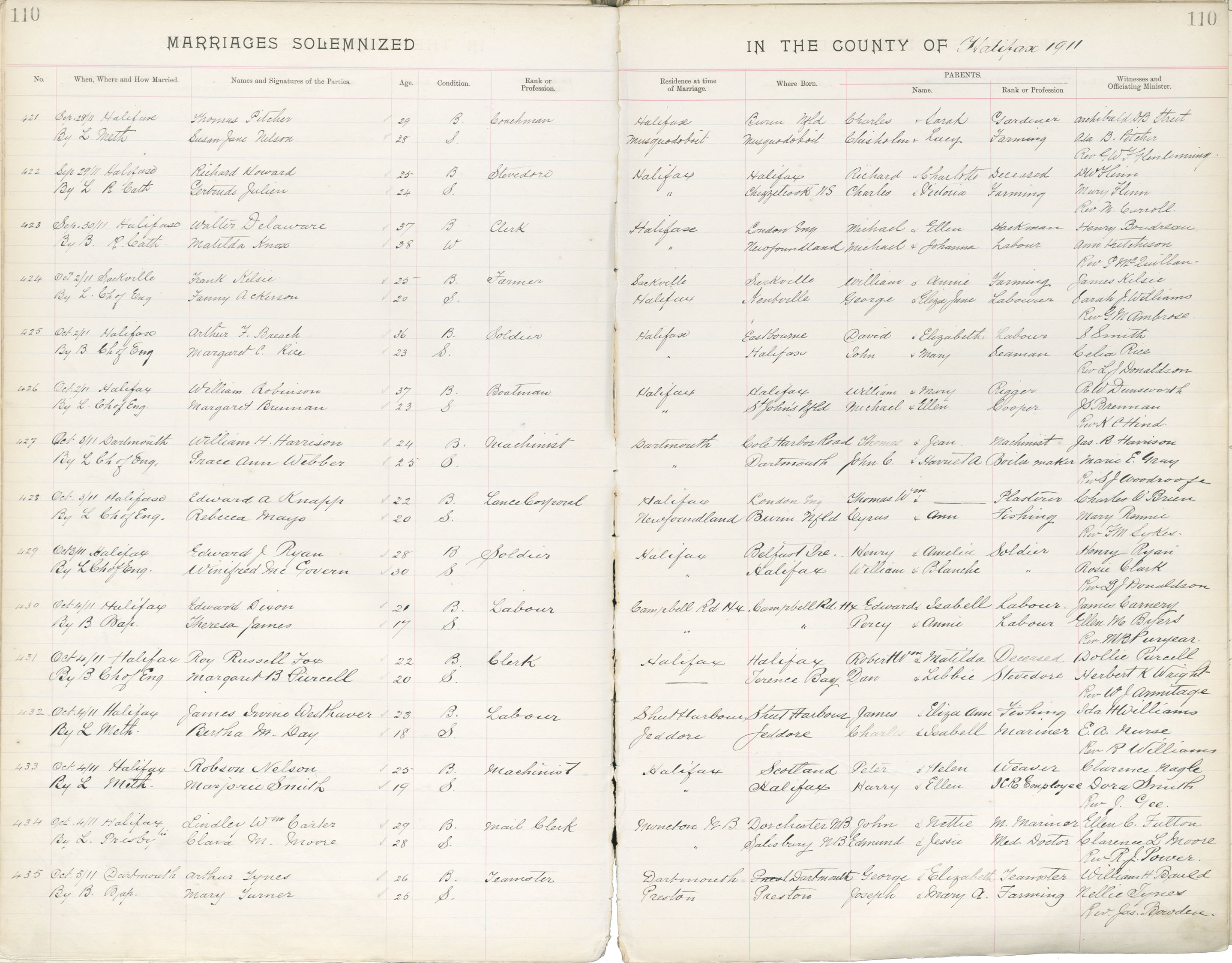 Registration: Year: 1911 book: 1821 page: 110 number: 421