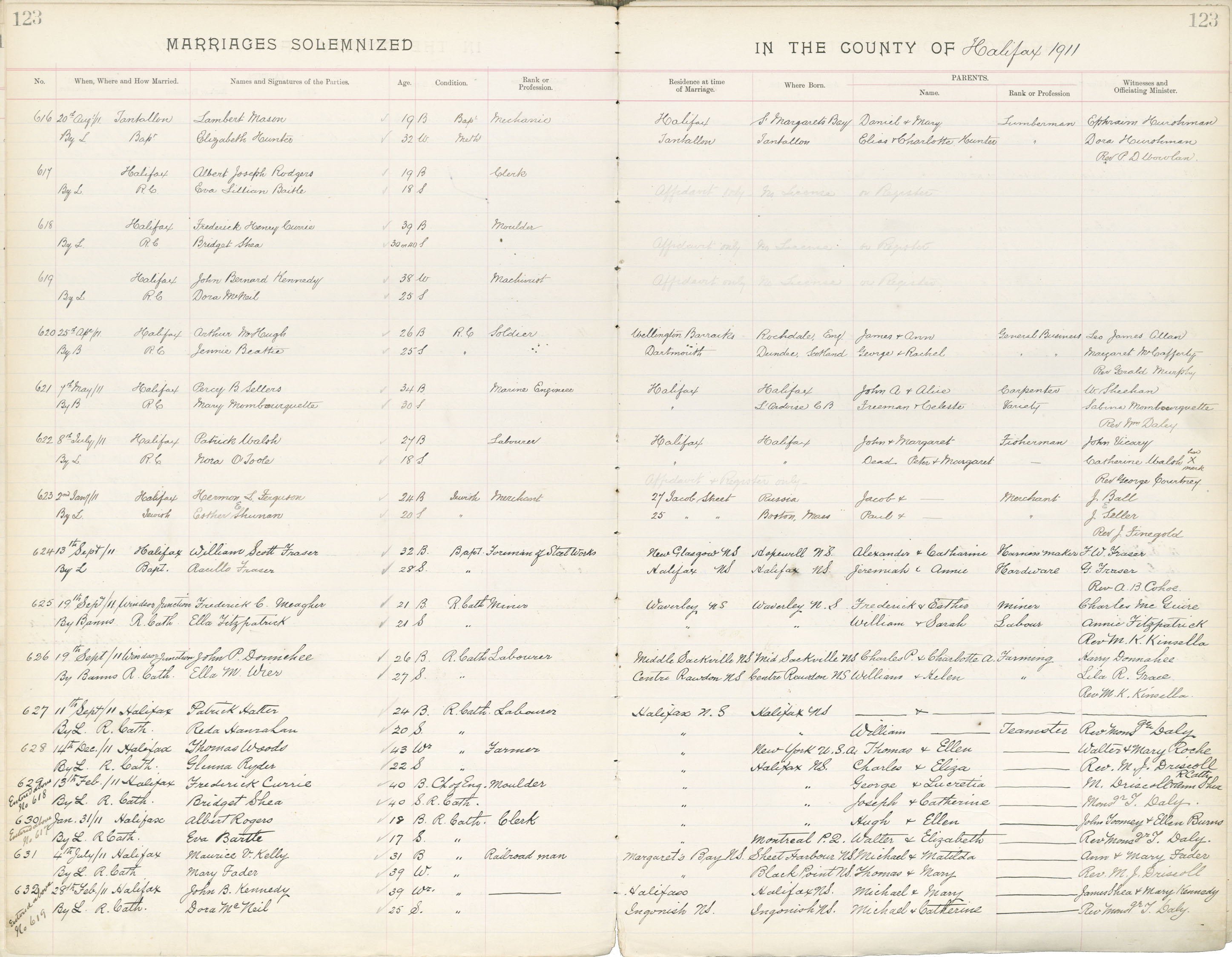 Registration: Year: 1911 book: 1821 page: 123 number: 616