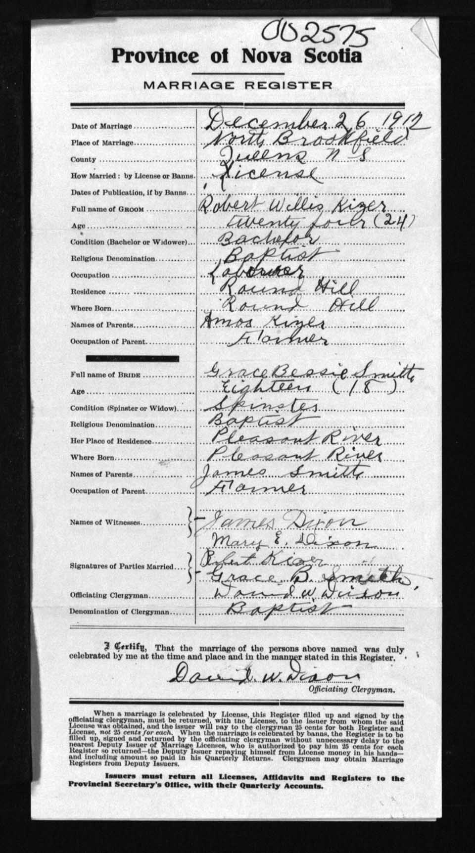 Registration: Year: 1912 number: 2575