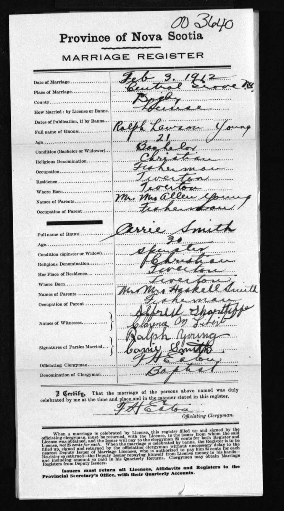 Registration: Year: 1912 number: 3640