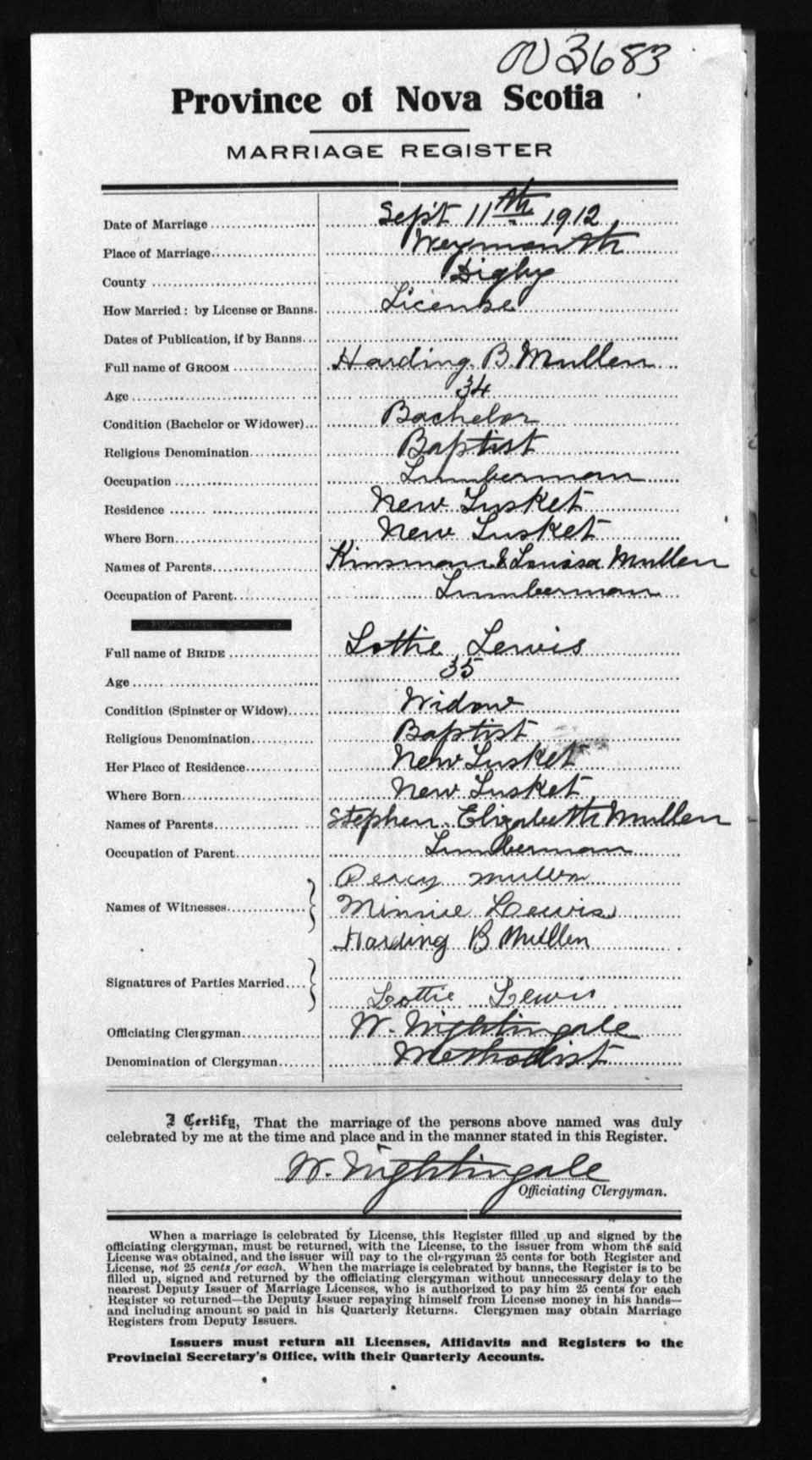 Registration: Year: 1912 number: 3683