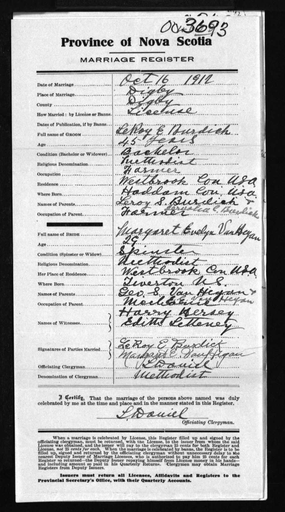 Registration: Year: 1912 number: 3693