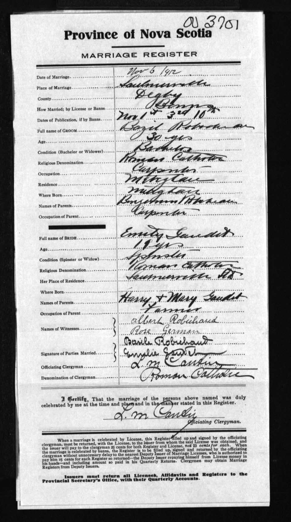 Registration: Year: 1912 number: 3701