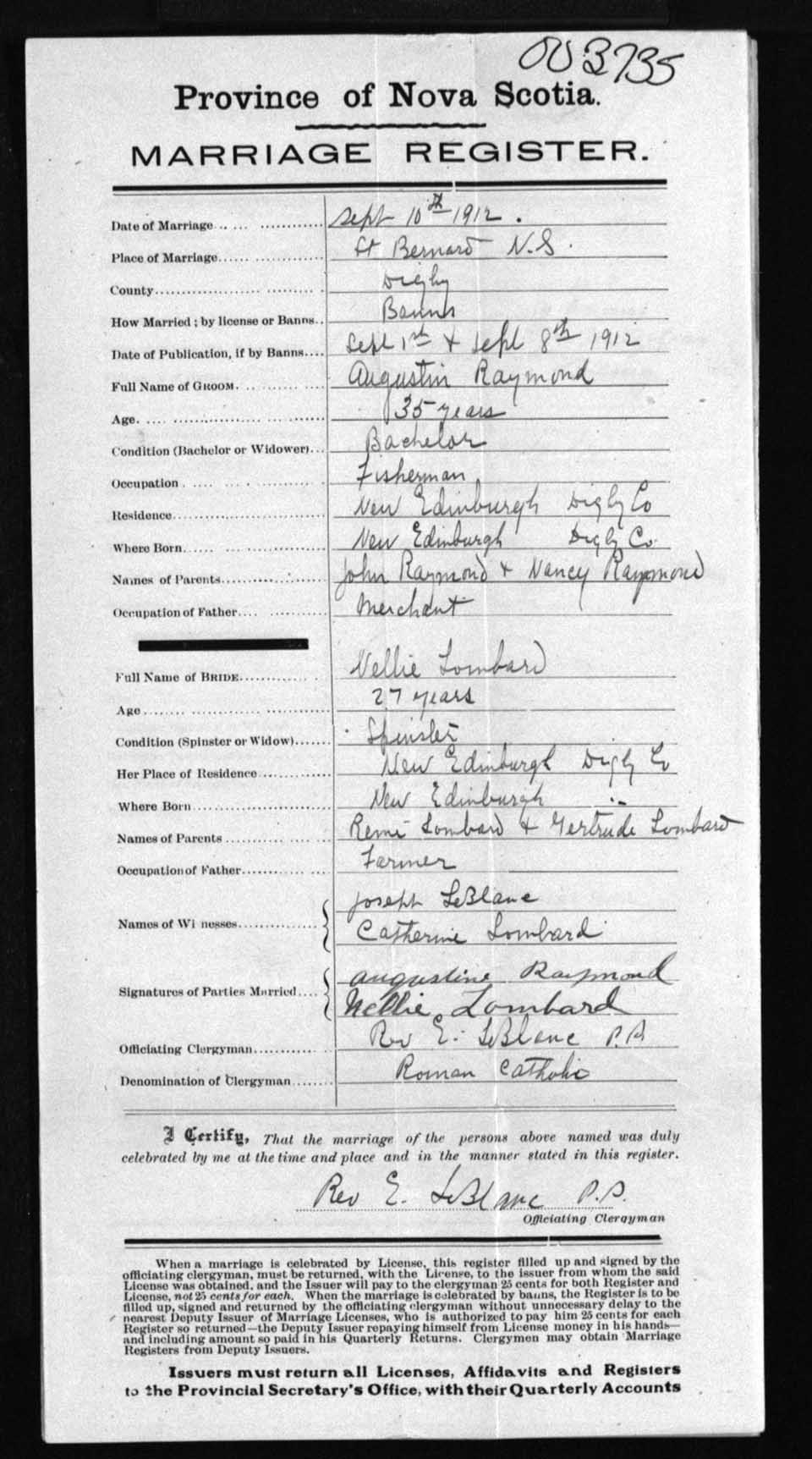 Registration: Year: 1912 number: 3735