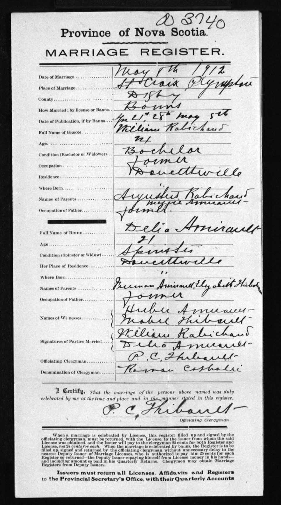 Registration: Year: 1912 number: 3740