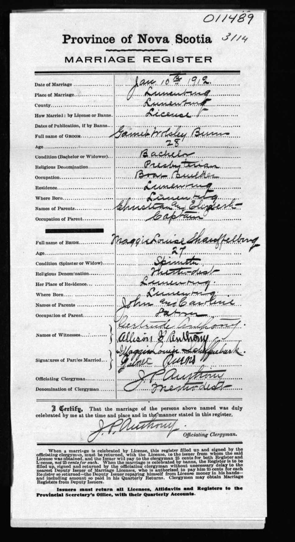 Registration: Year: 1912 number: 11489
