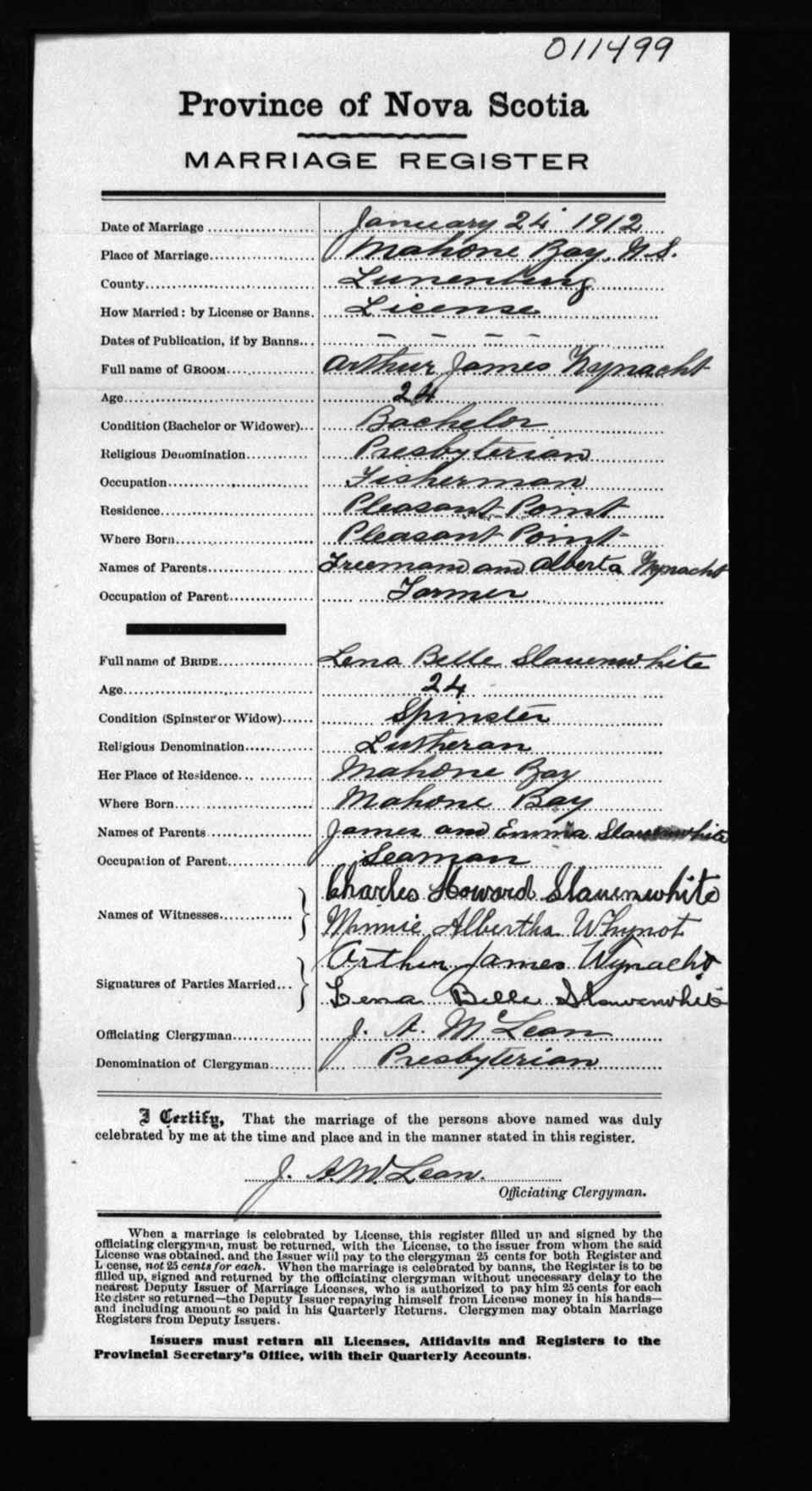 Registration: Year: 1912 number: 11499