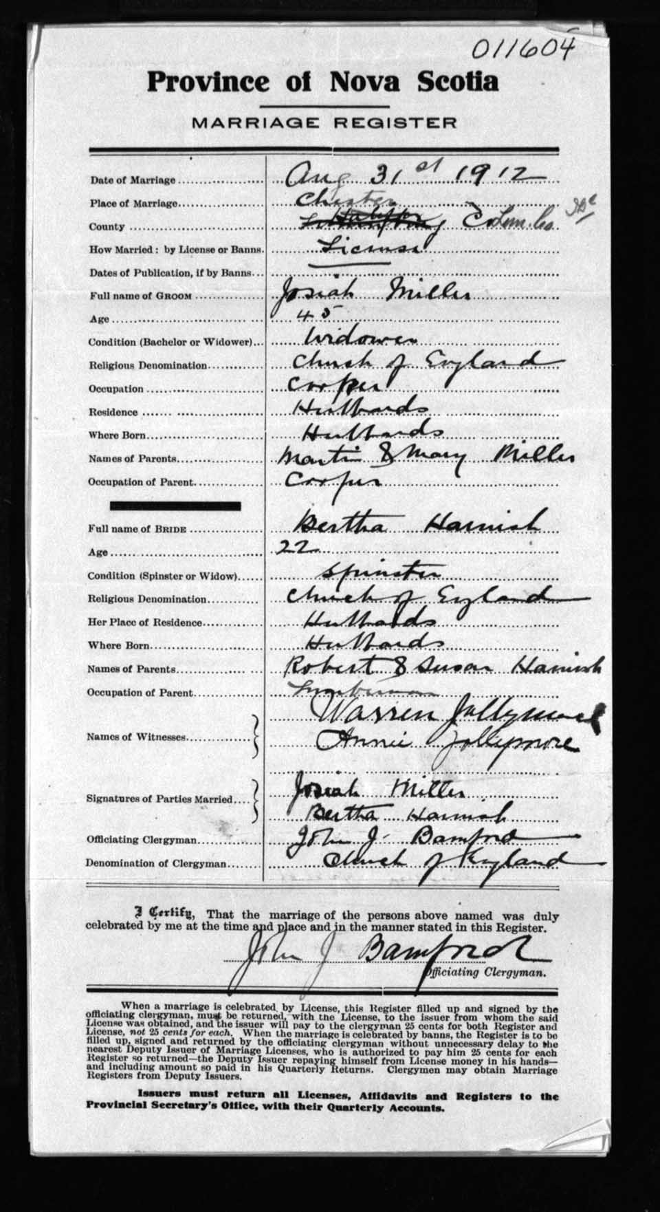 Registration: Year: 1912 number: 11604