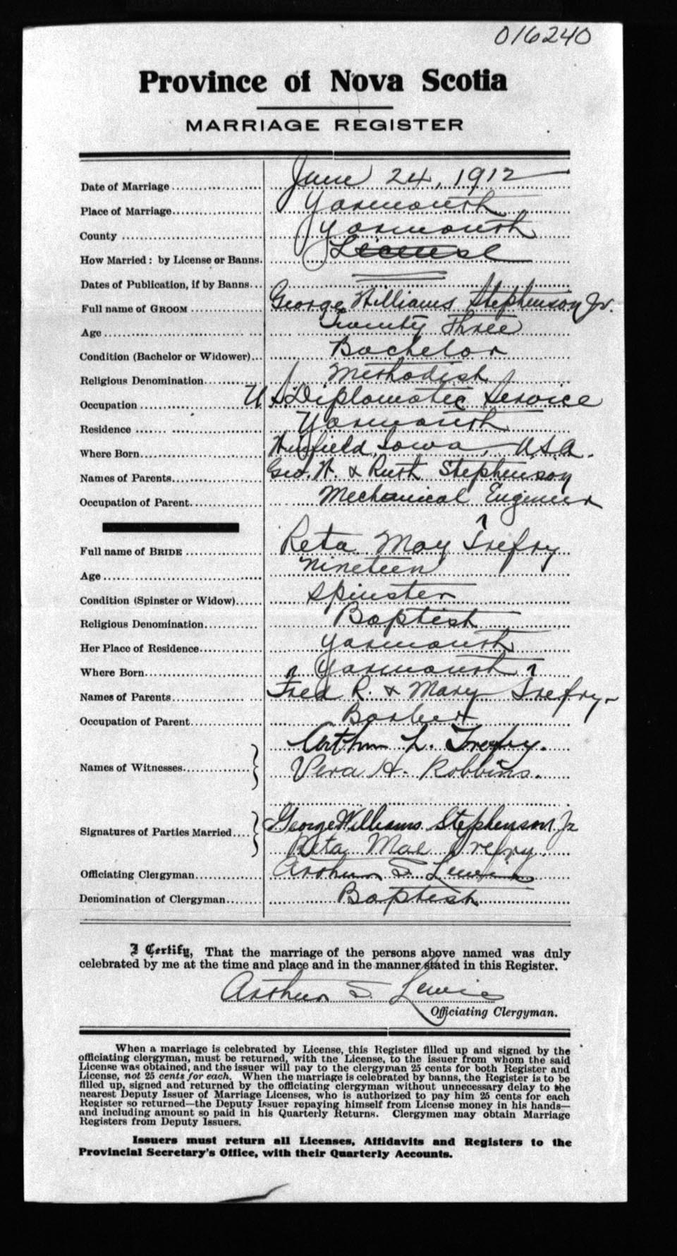 Registration: Year: 1912 number: 16240