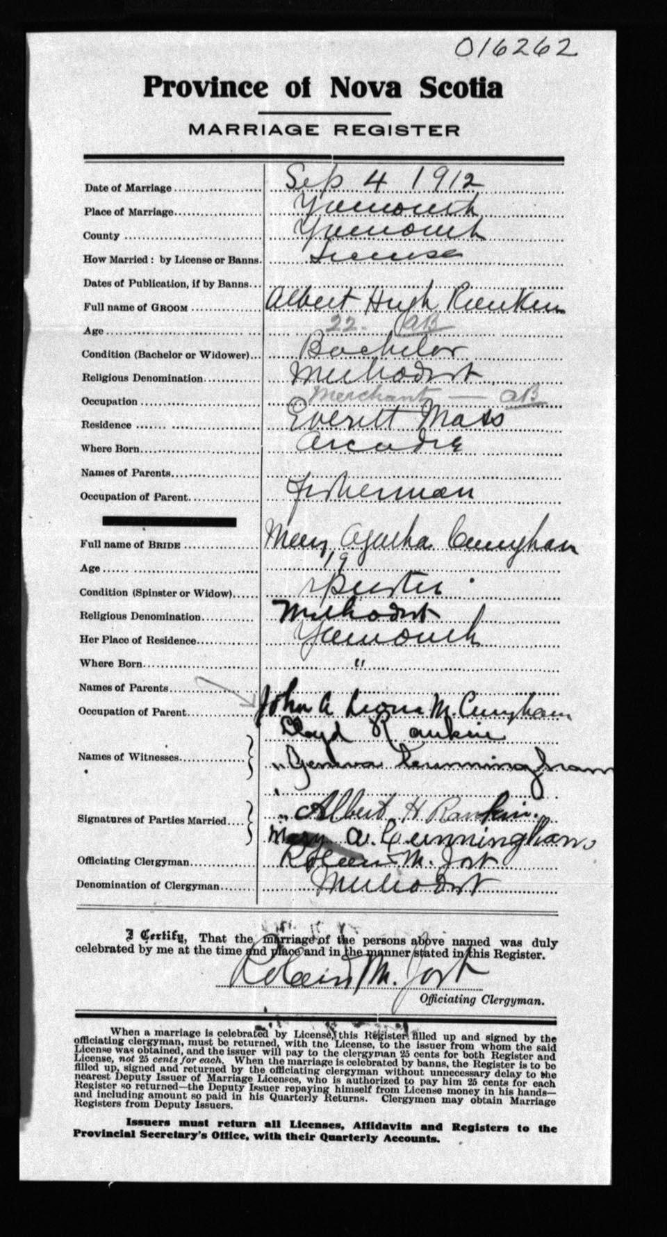 Registration: Year: 1912 number: 16262