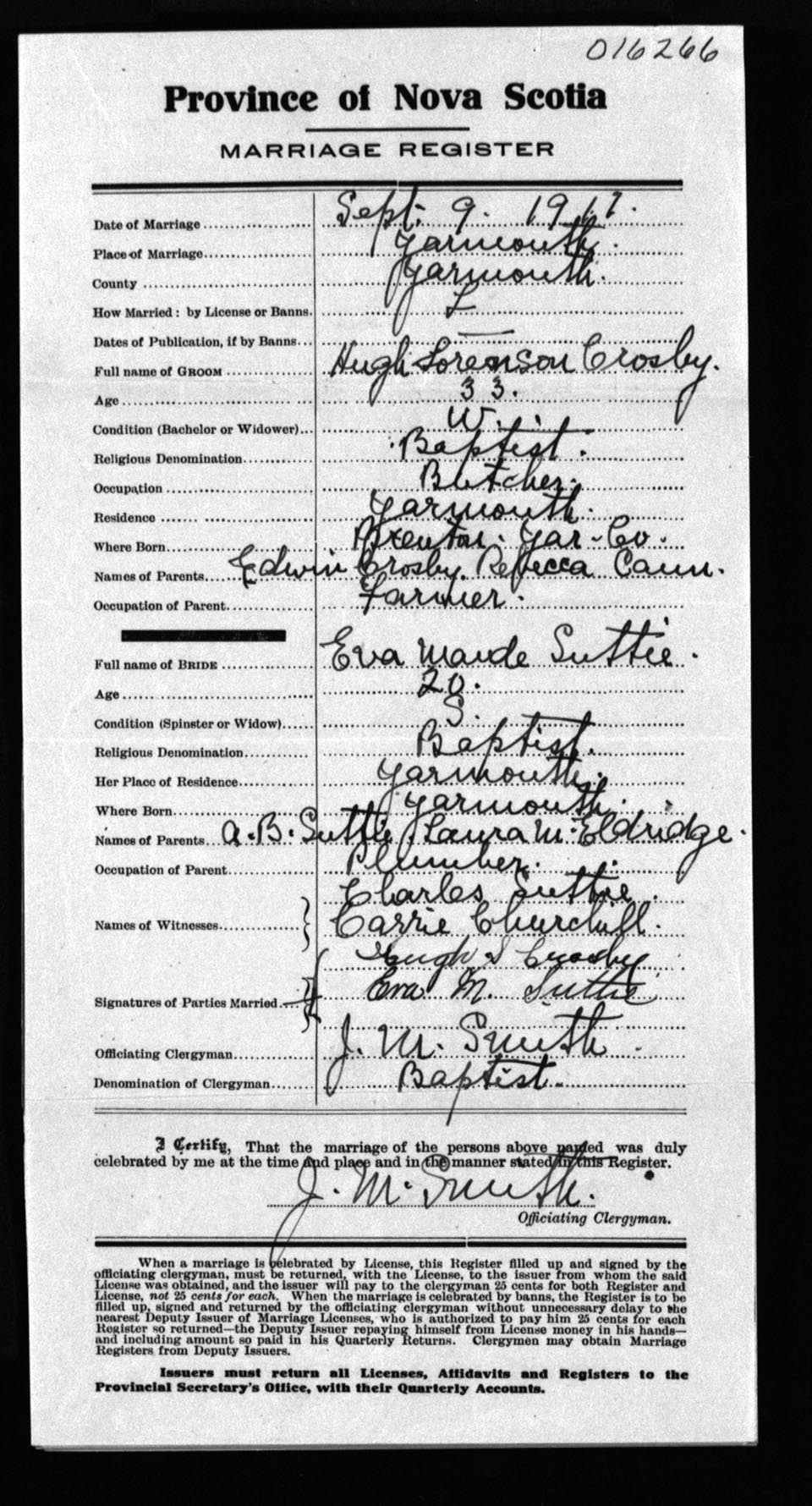 Registration: Year: 1912 number: 16266