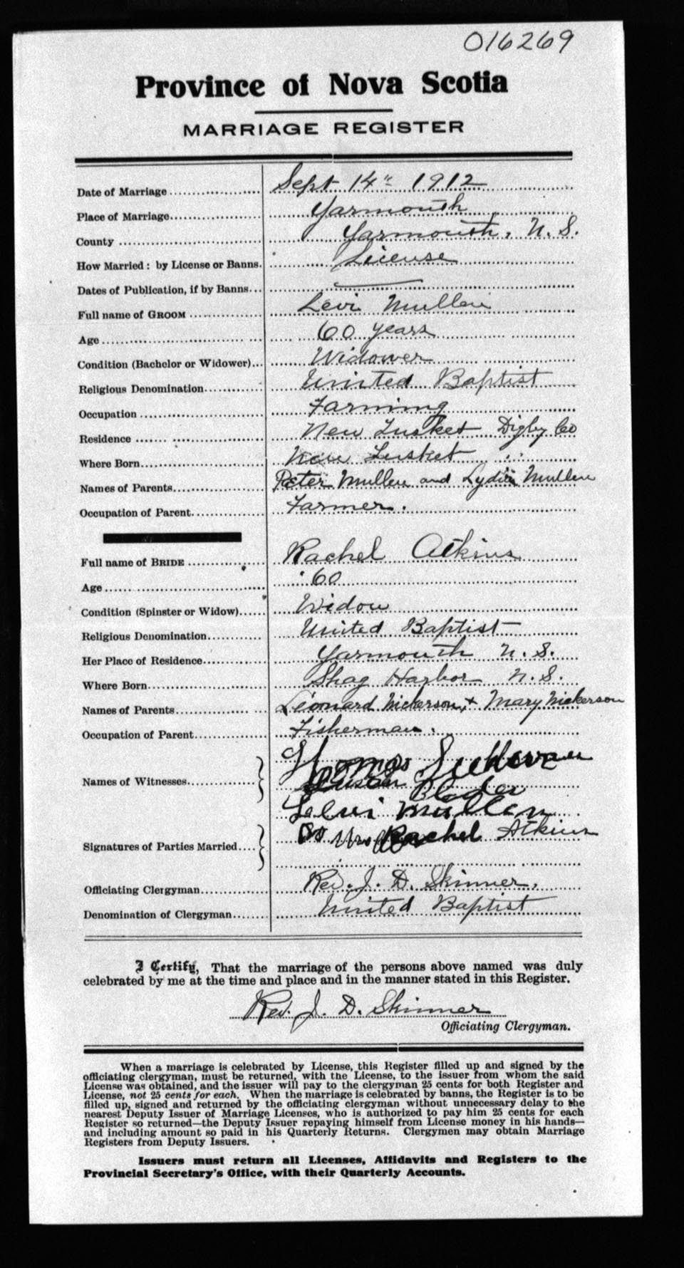 Registration: Year: 1912 number: 16269