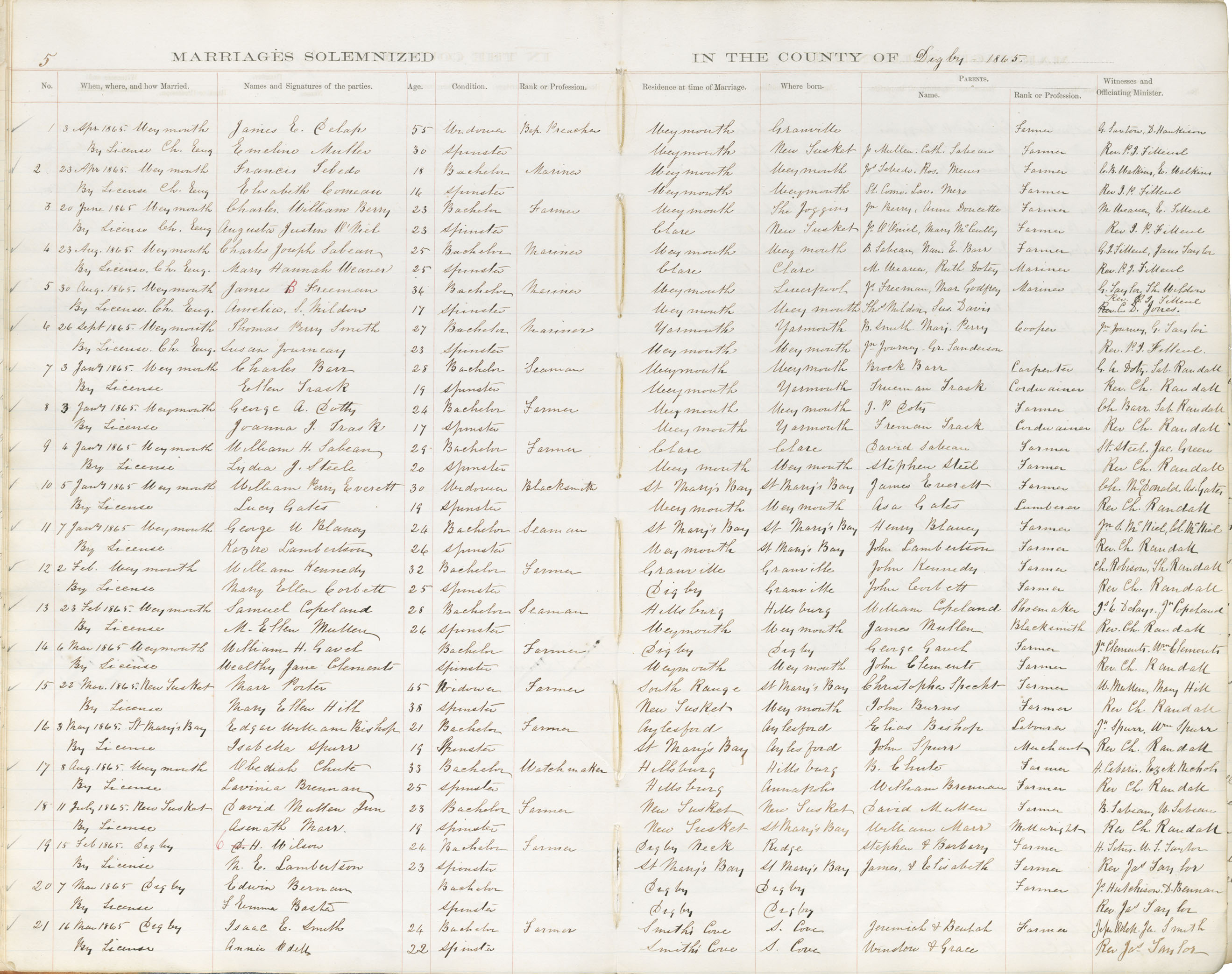 Registration: Year: 1865 book: 1812 page: 5 number: 21
