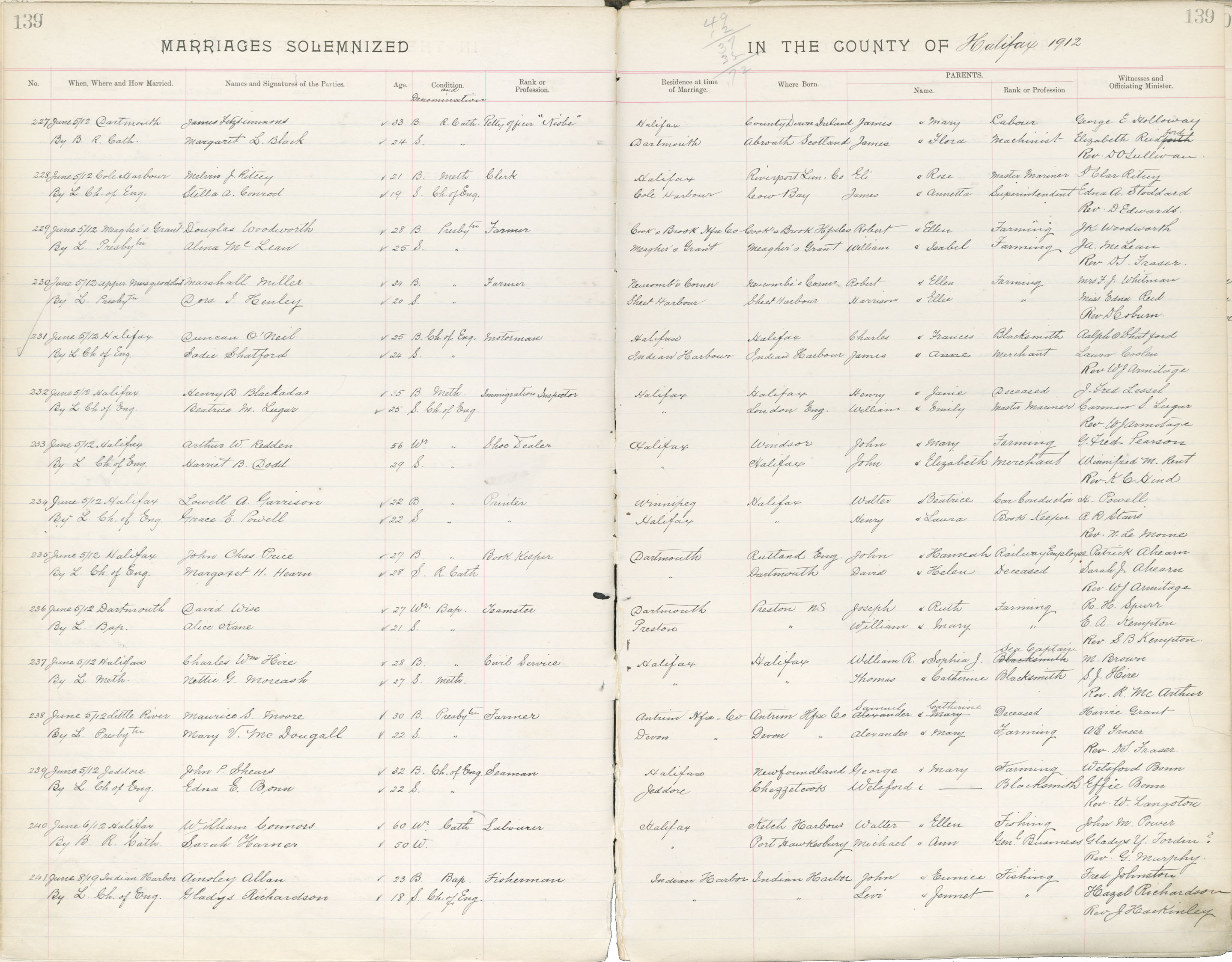 Registration: Year: 1912 book: 1821 page: 139 number: 227
