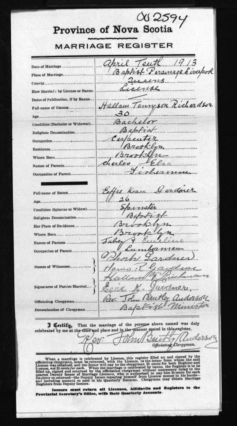 Registration: Year: 1913 number: 2594