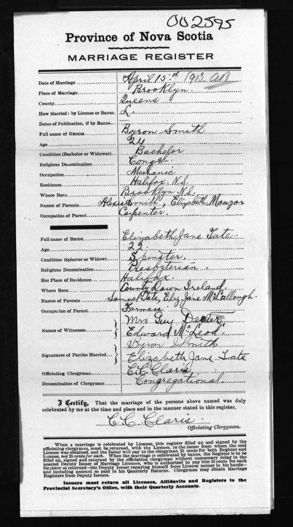 Registration: Year: 1913 number: 2595