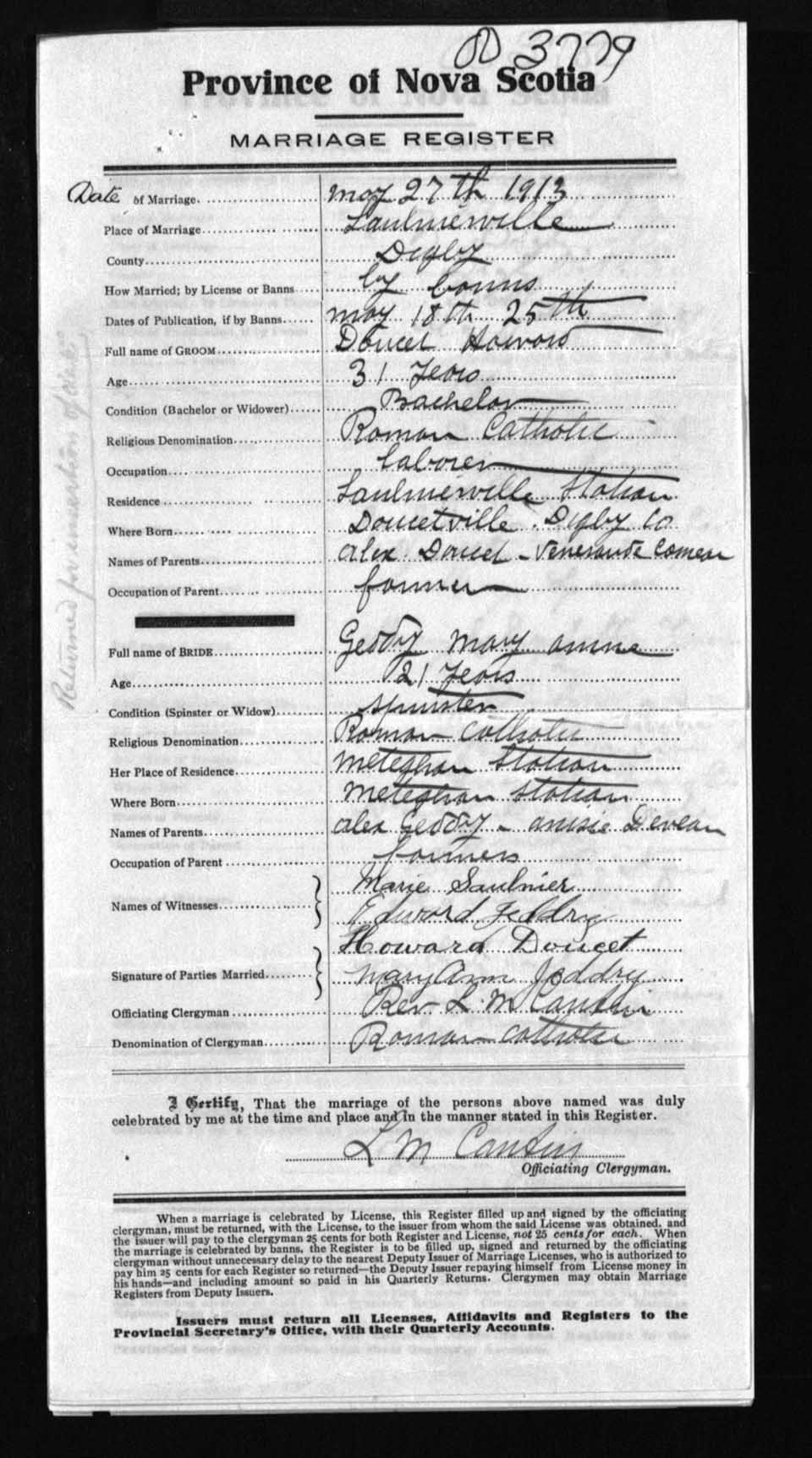 Registration: Year: 1913 number: 3779