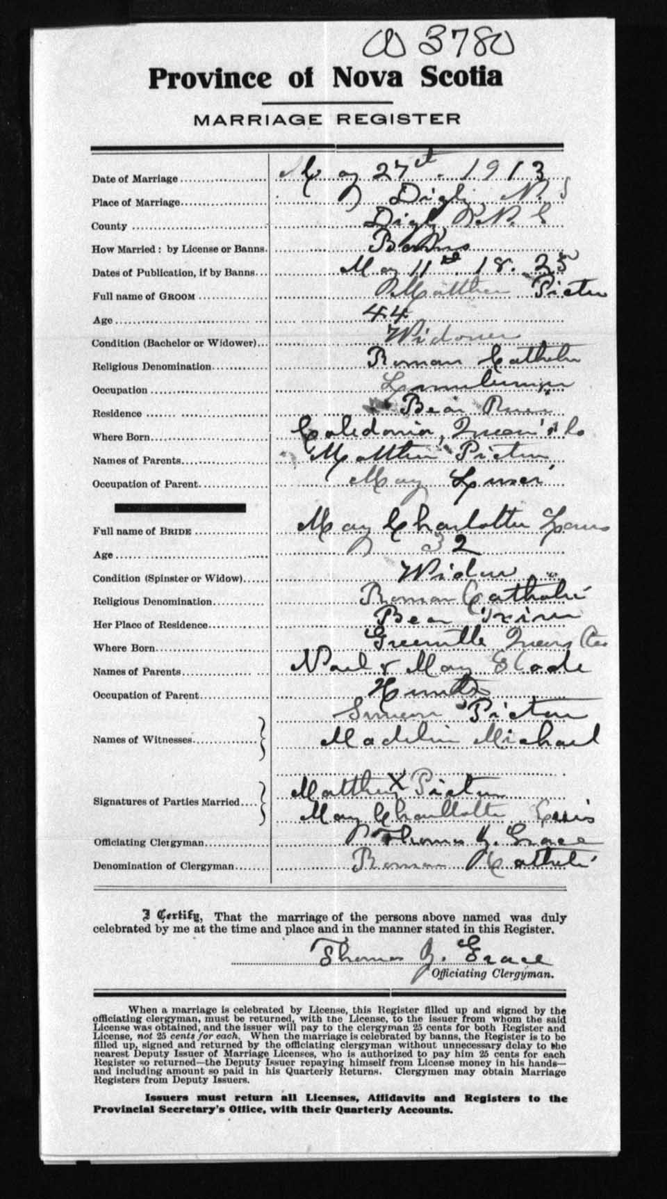 Registration: Year: 1913 number: 3780