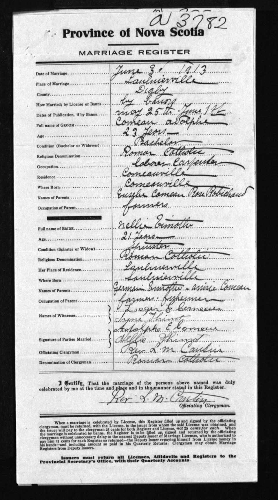 Registration: Year: 1913 number: 3782