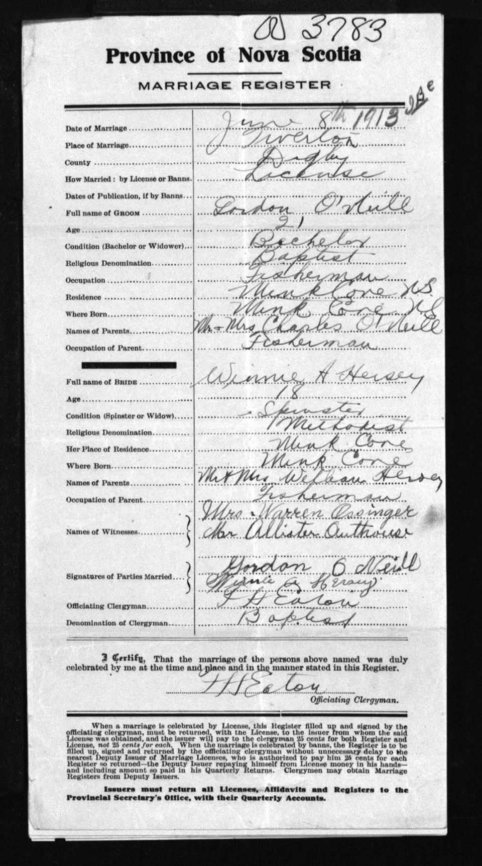 Registration: Year: 1913 number: 3783