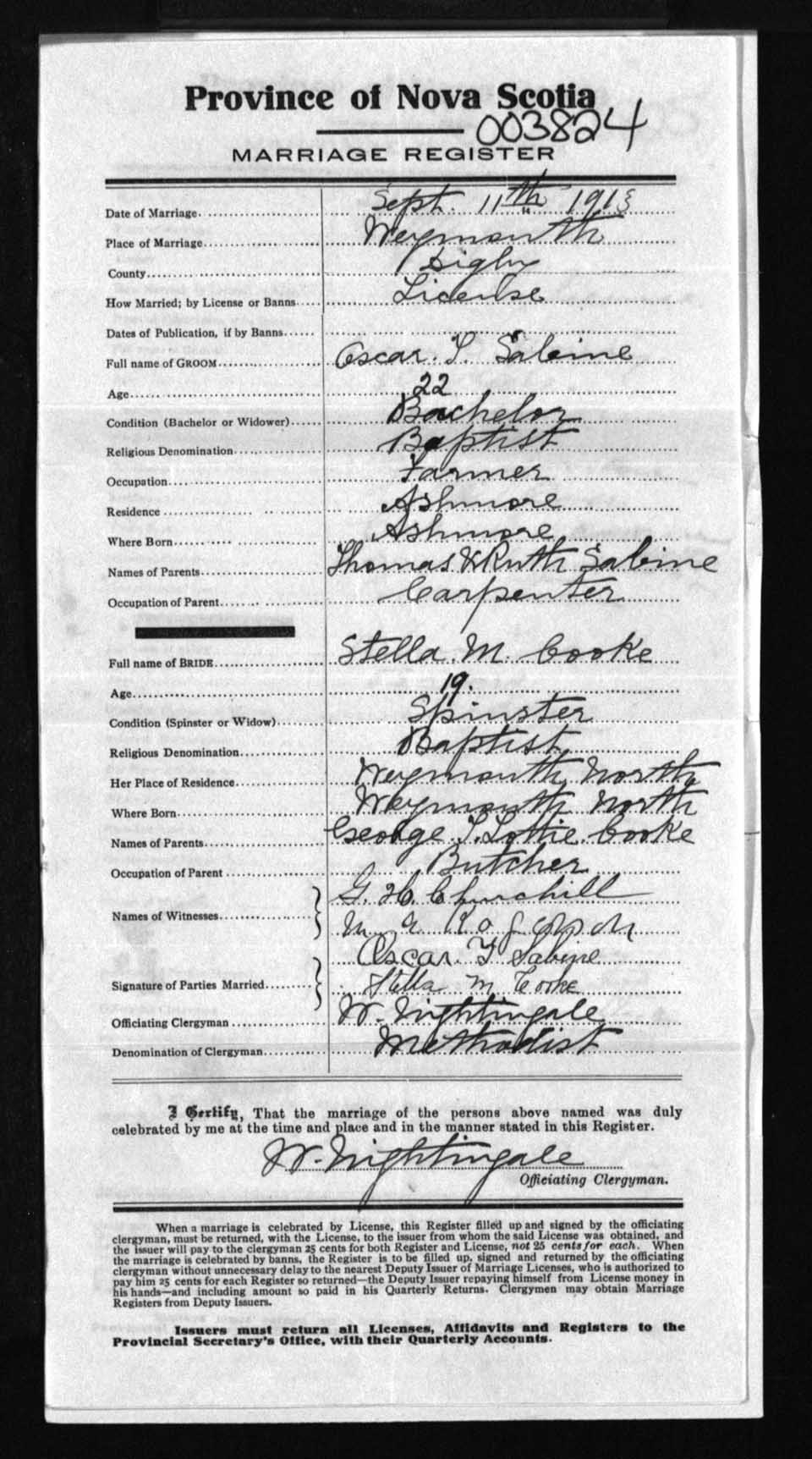 Registration: Year: 1913 number: 3824