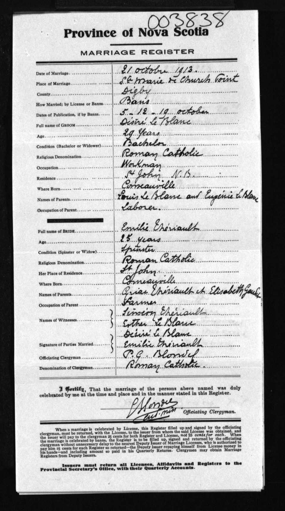 Registration: Year: 1913 number: 3838