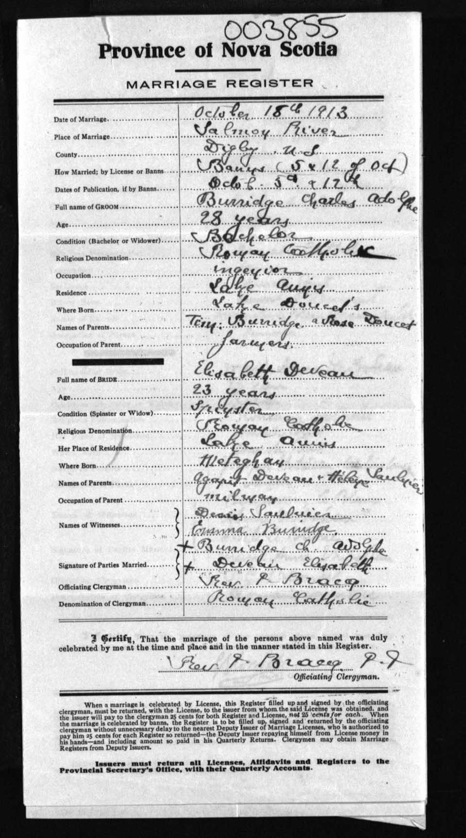Registration: Year: 1913 number: 3855