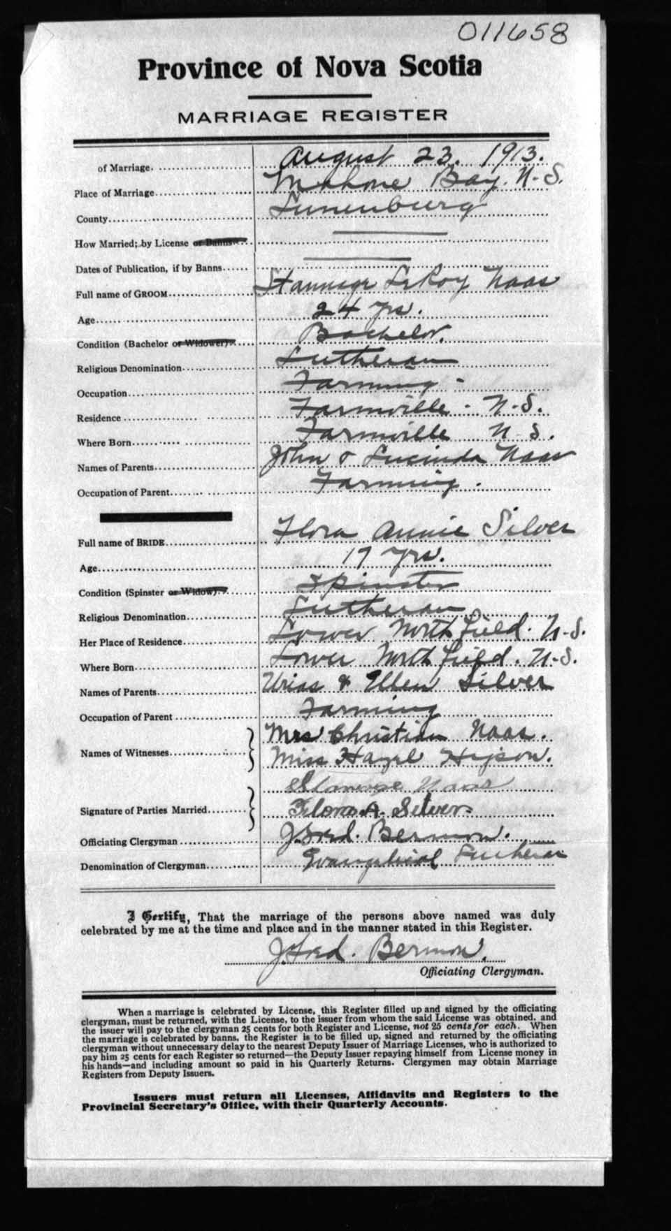 Registration: Year: 1913 number: 11658