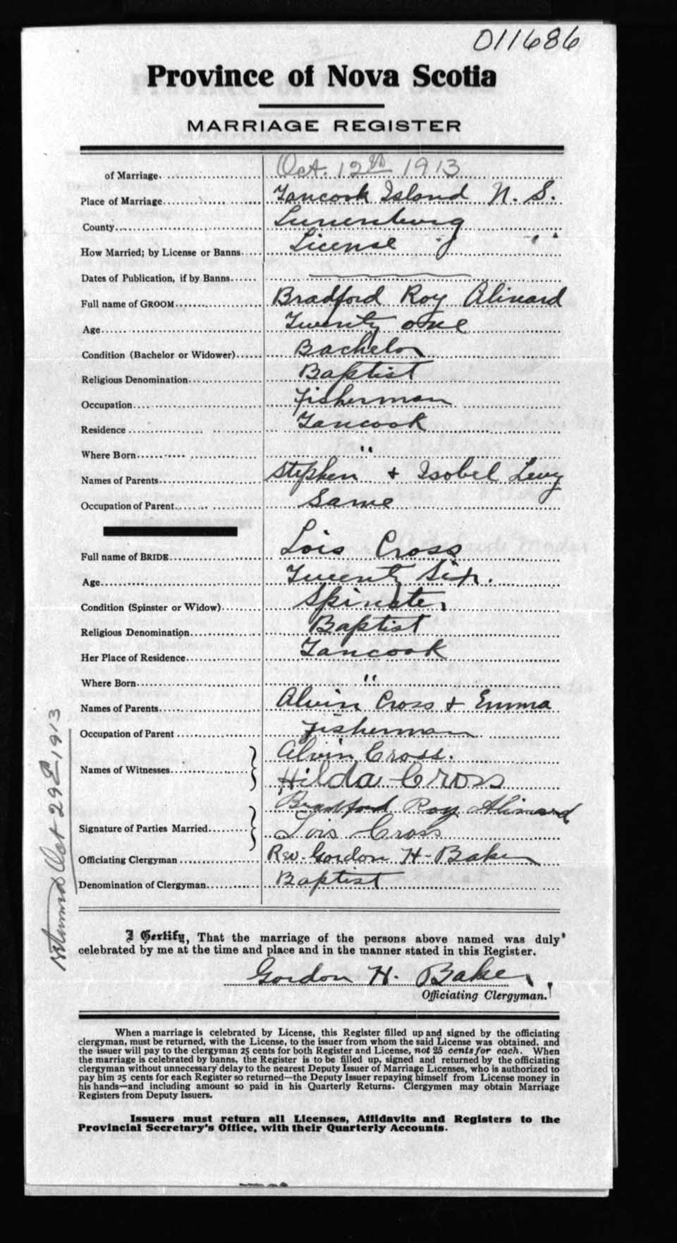 Registration: Year: 1913 number: 11686