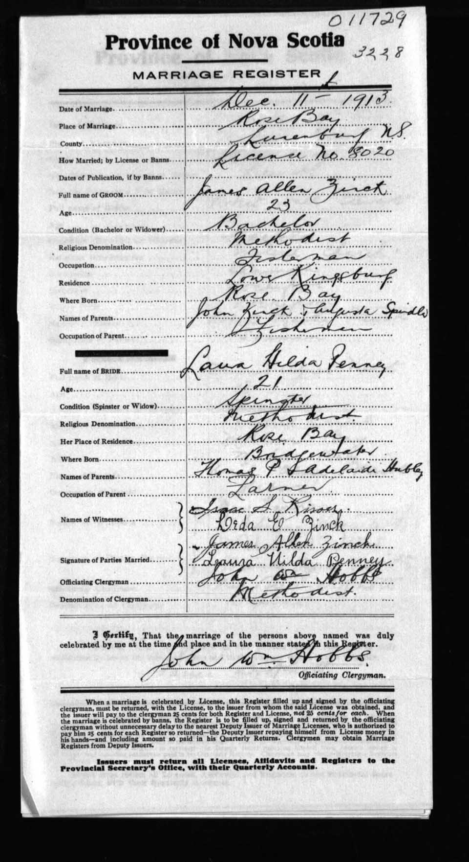 Registration: Year: 1913 number: 11729