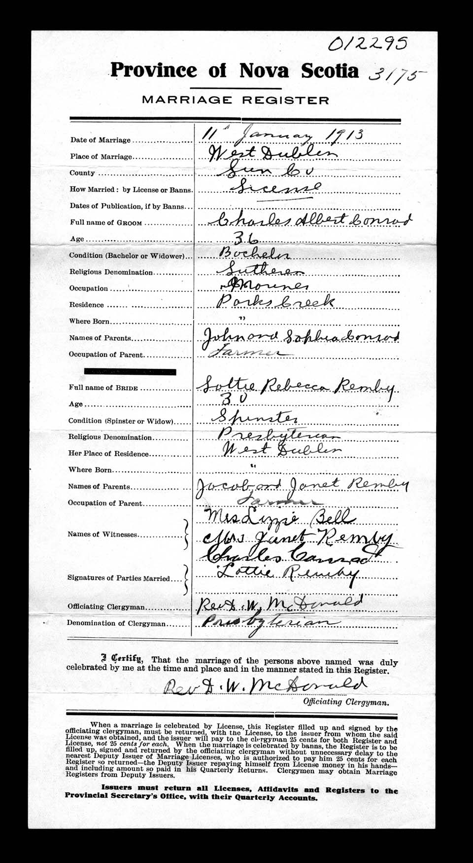 Registration: Year: 1913 number: 12295