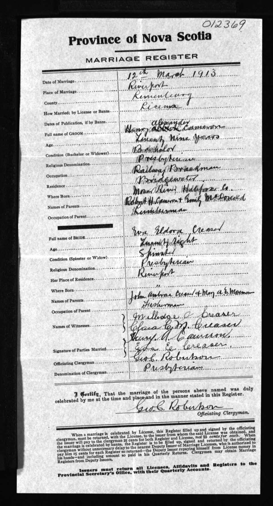 Registration: Year: 1913 number: 12369
