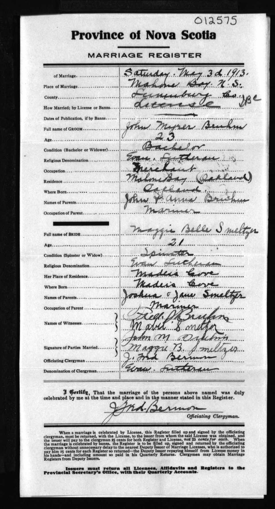 Registration: Year: 1913 number: 12575