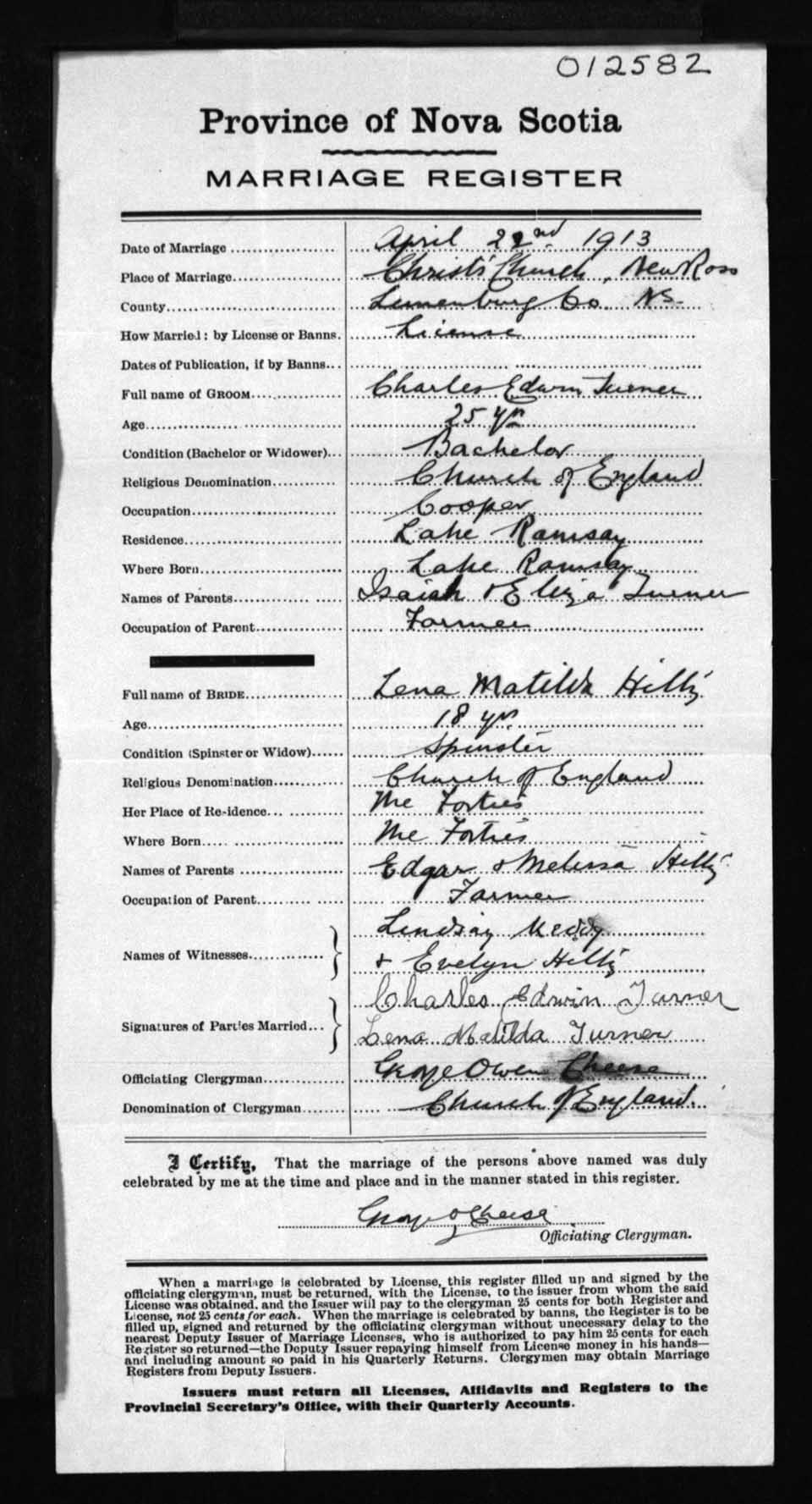 Registration: Year: 1913 number: 12582