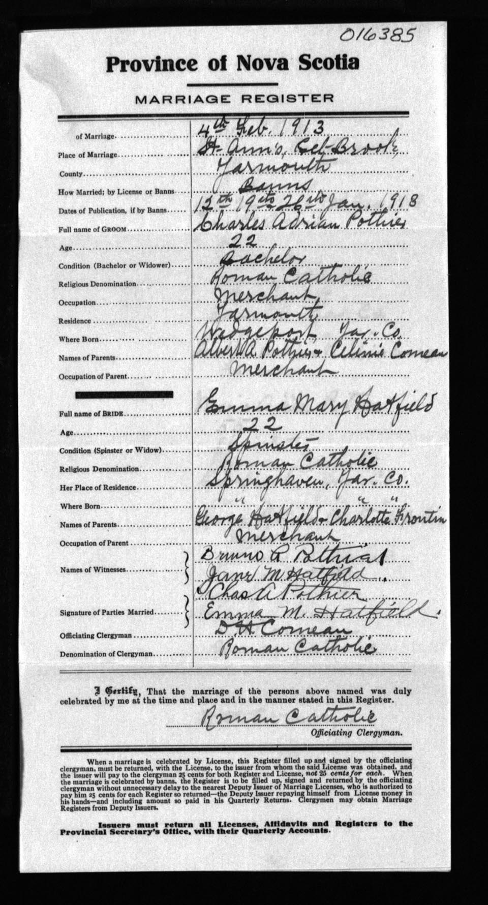 Registration: Year: 1913 number: 16385