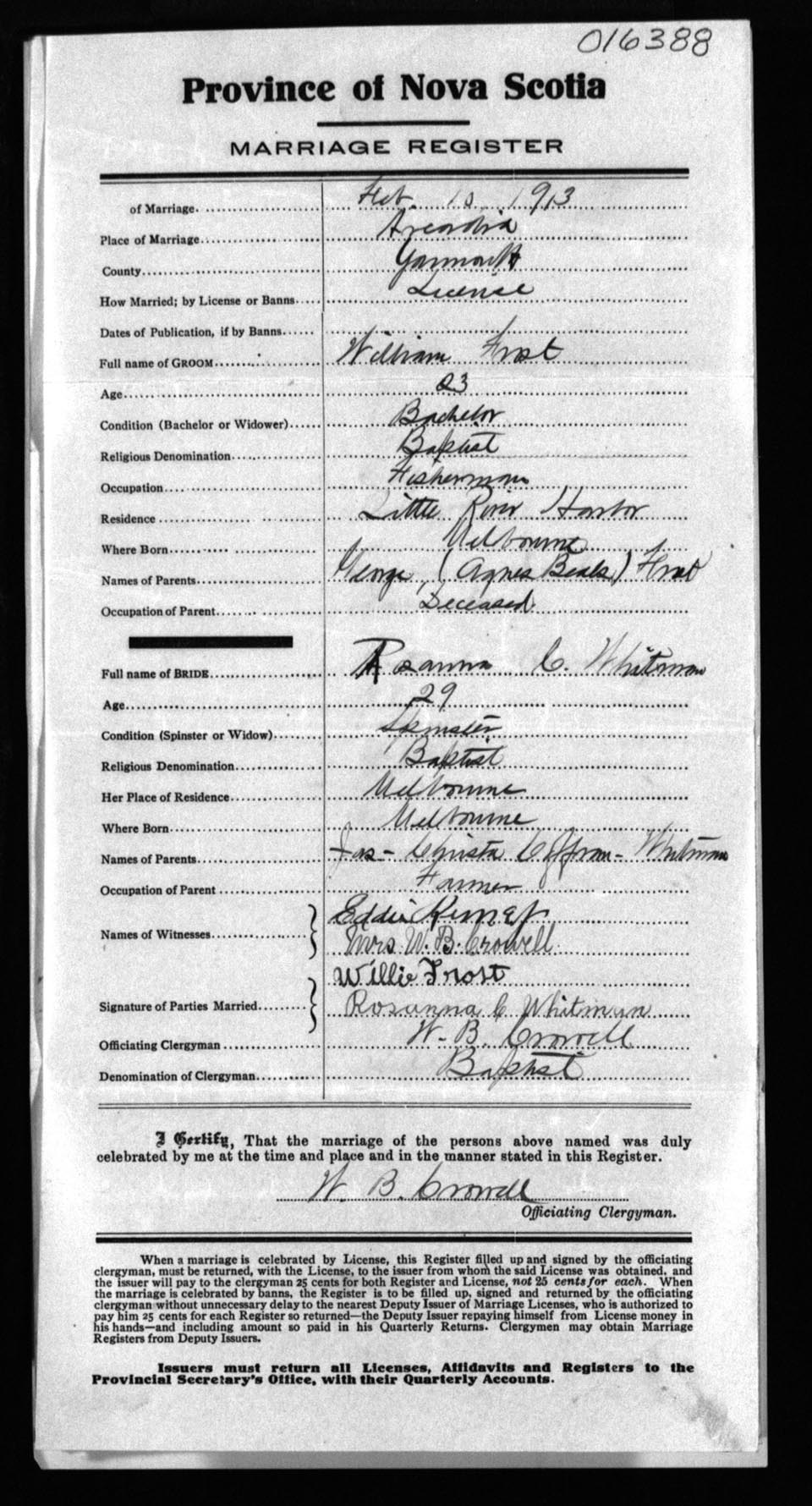 Registration: Year: 1913 number: 16388