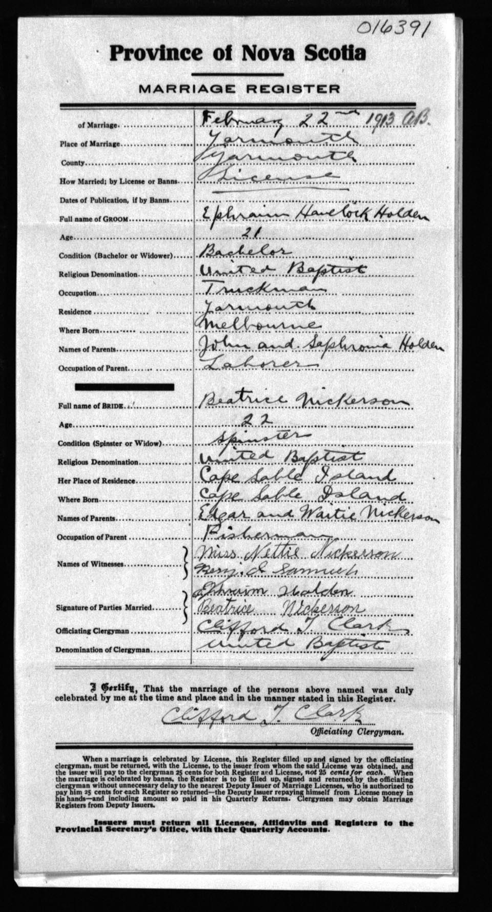 Registration: Year: 1913 number: 16391