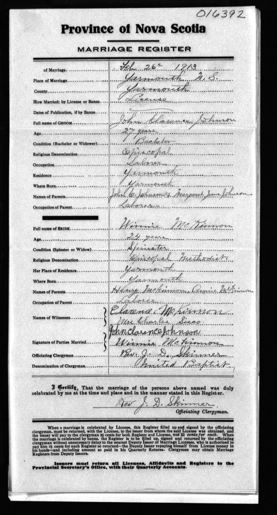 Registration: Year: 1913 number: 16392
