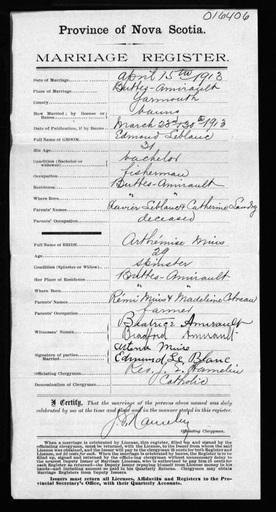 Registration: Year: 1913 number: 16406
