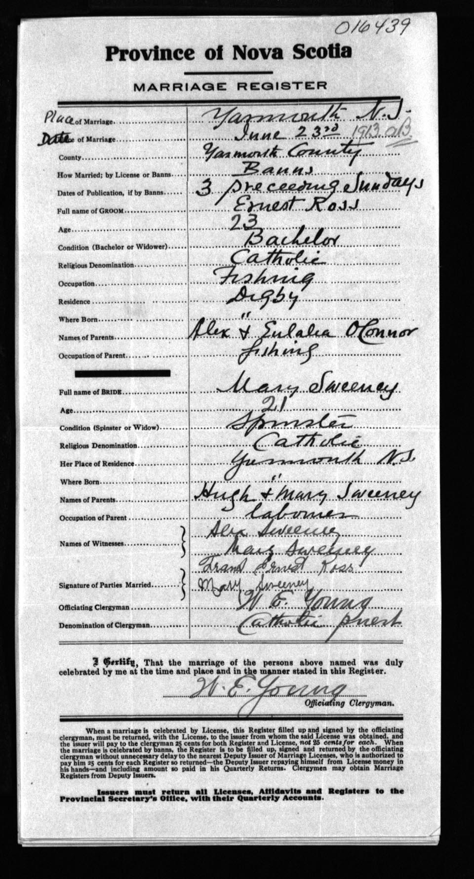 Registration: Year: 1913 number: 16439