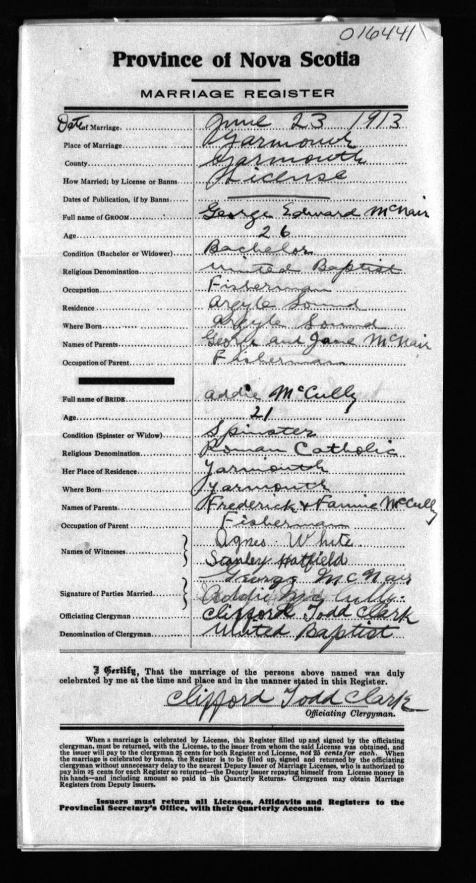 Registration: Year: 1913 number: 16441